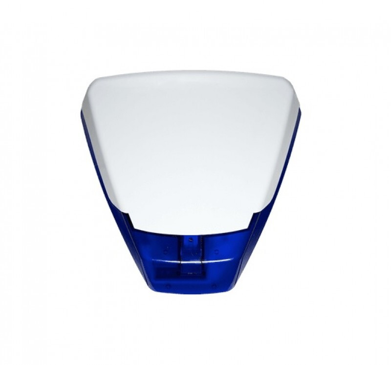 Deltabell X kültéri sziréna; PCB modullal és akkumulátorral; 2 Piezo; fehér burkolat; kék alap